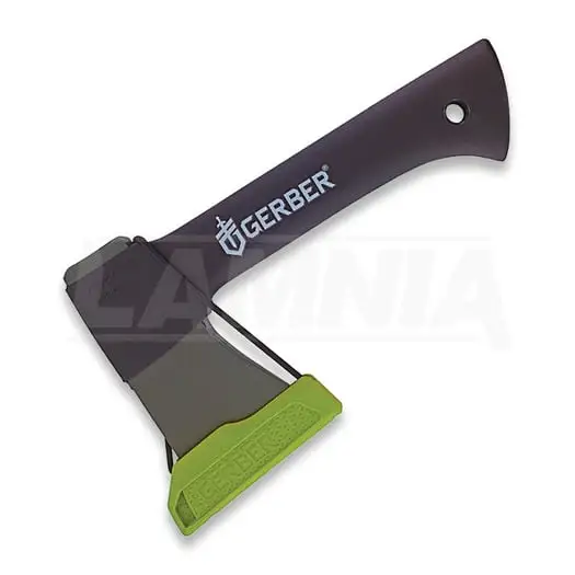 229 mm overall. 70 mm cutting edge. Black steel blade. Black synthetic handle. 4 3/4 axe head with and hammer. Blade cover stores inside handle when not in use. Green blade cover