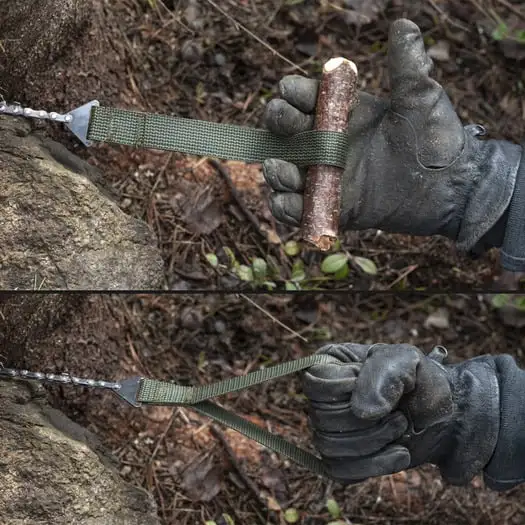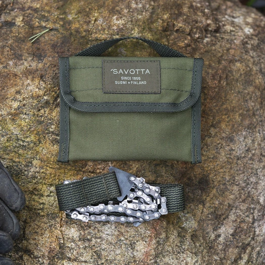 In the wilderness, you often need strong and sharp tools to cut wood down to the desired length for building a fire or shelter. A pocket saw with durable strap handles is a compact and light-weight product for the job.