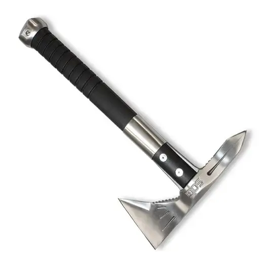The original SOG Voodoo Hawk was designed as a combination of our tactical Tomahawk and FastHawk. This Voodoo Hawk Mini is smaller and lighter while featuring the same components; an extended cutting head, spike for piercing applications, compact glass-reinforced nylon handle, and metal pommel cap.