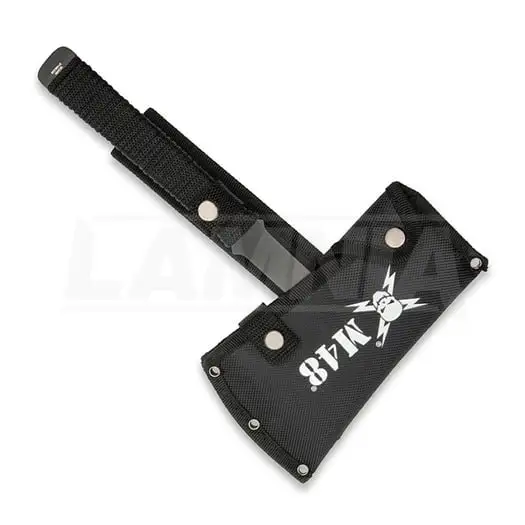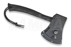 10.75″ overall. 5.5″ black finish 3Cr13 stainless axe head with 2.5″ cutting edge. Black cord wrapped handle. Full, extended tang. Set of three. Spike end. Black nylon belt sheath.