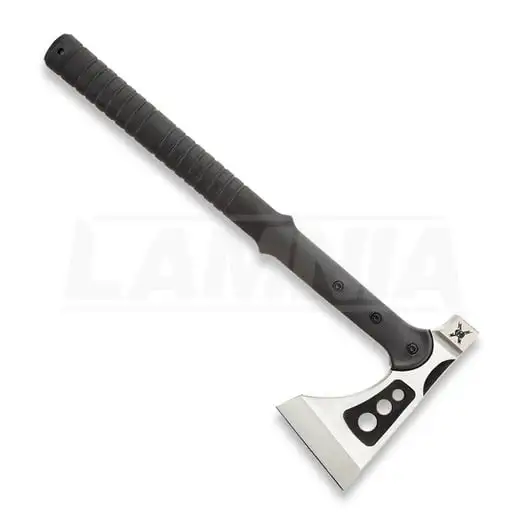15.5″ overall. 6.38″ two-tone finish 3Cr13 stainless axe head with 3.25″ cutting edge. Black nylon handle. Hammer end. Black nylon sheath.
